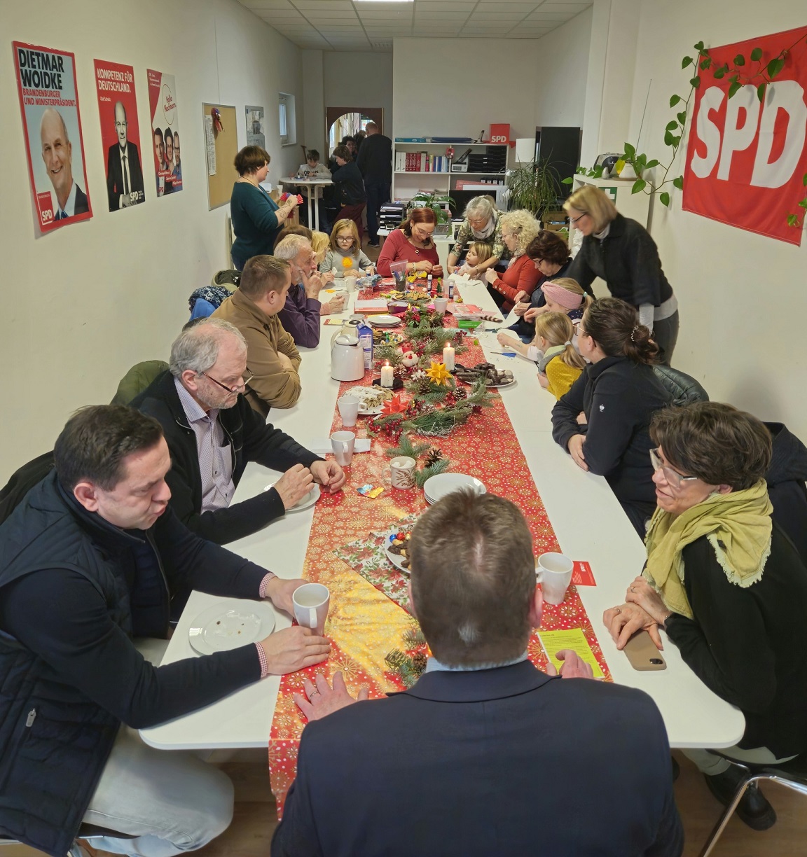 Auch unsere Bundestagabgeordnete Maja Wallstein kam mit ihren beiden Kids samt Mann vorbei und bastelte engagiert mit. Ebenso Heiko Jahn, unser Landratswahl-Kandidat, ließ es sich nicht nehmen, ein paar Pfefferkuchen und Plätzchen zu sponsoren. Und so ergab sich auch ganz nebenbei, der ein oder andere Austausch außerhalb des weihnachtlichen Anlasses.