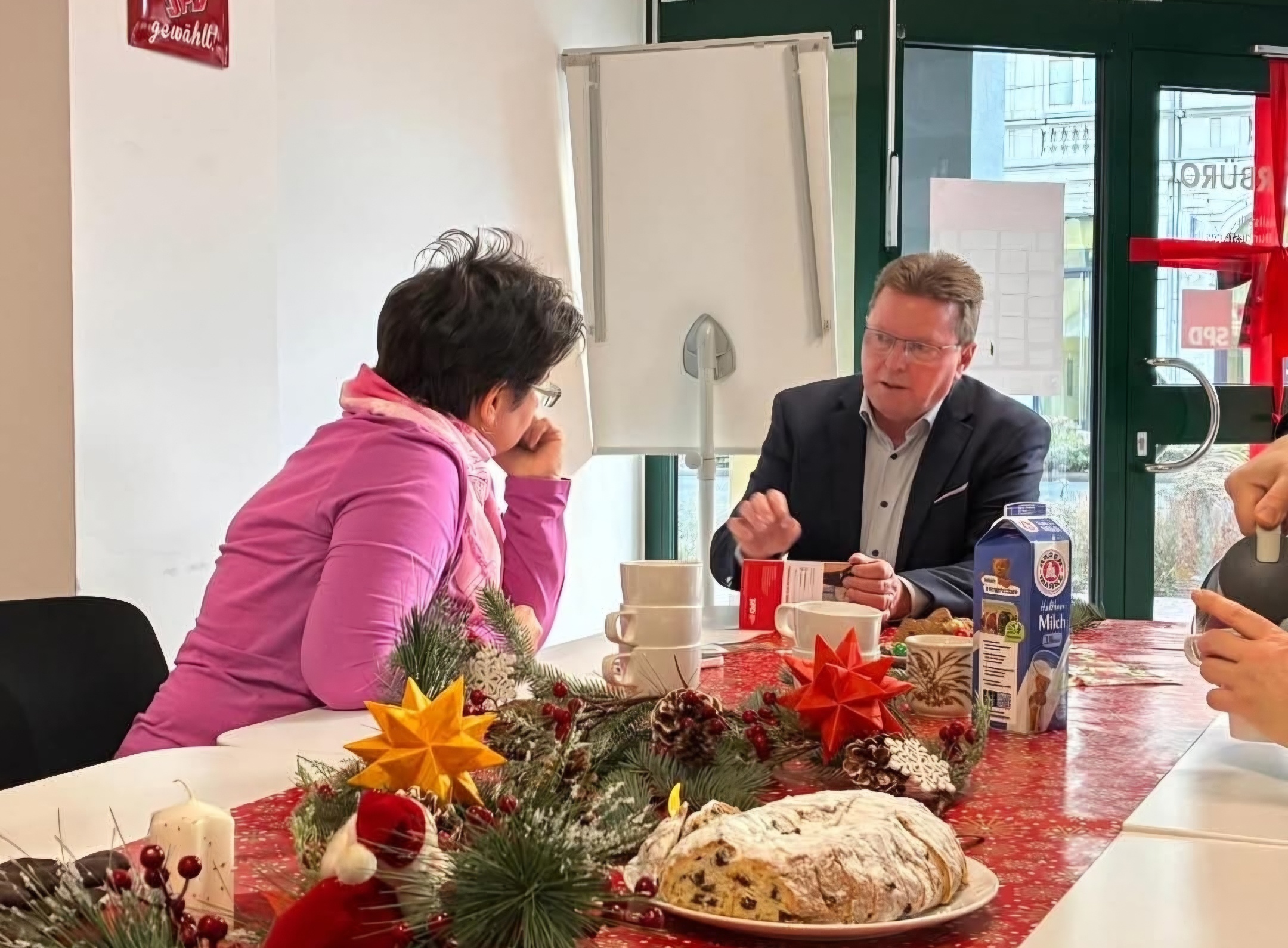 Auch unsere Bundestagabgeordnete Maja Wallstein kam mit ihren beiden Kids samt Mann vorbei und bastelte engagiert mit. Ebenso Heiko Jahn, unser Landratswahl-Kandidat, ließ es sich nicht nehmen, ein paar Pfefferkuchen und Plätzchen zu sponsoren. Und so ergab sich auch ganz nebenbei, der ein oder andere Austausch außerhalb des weihnachtlichen Anlasses.
